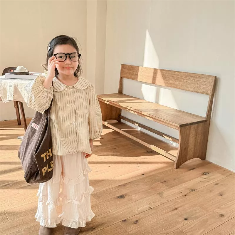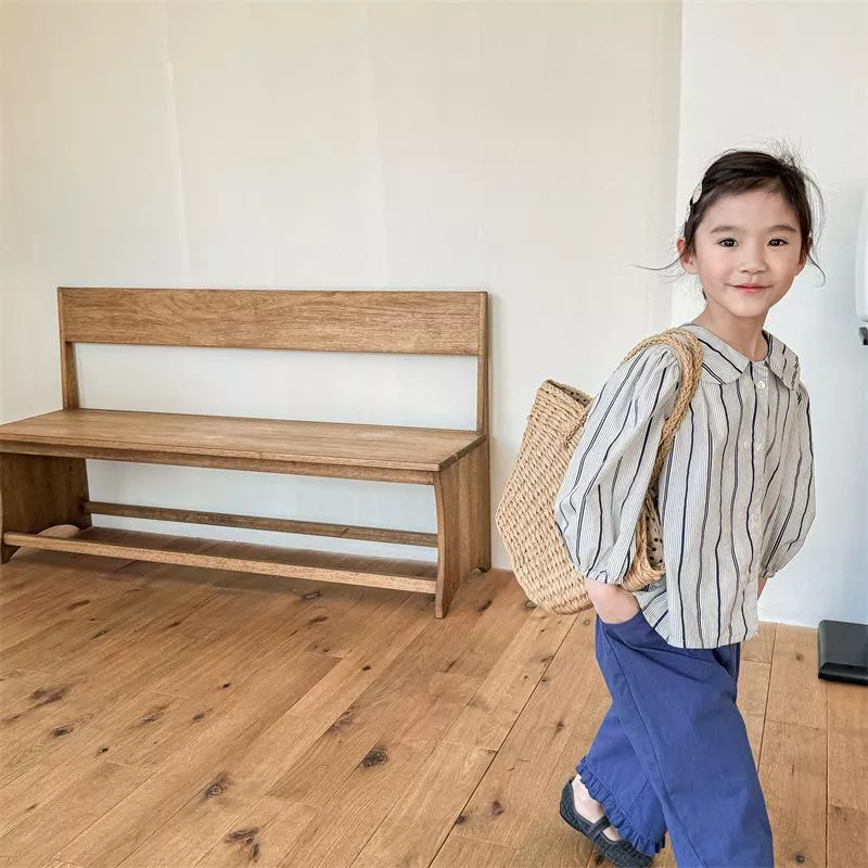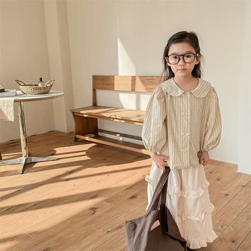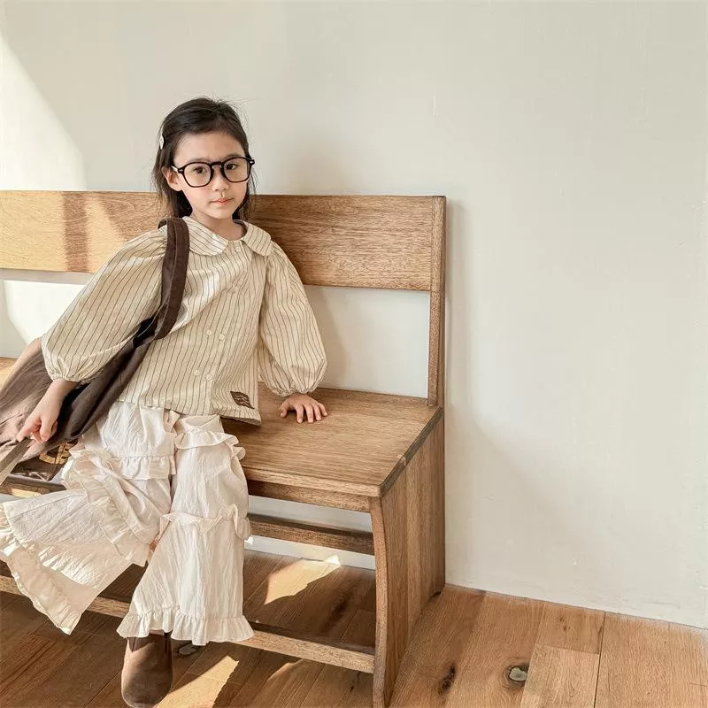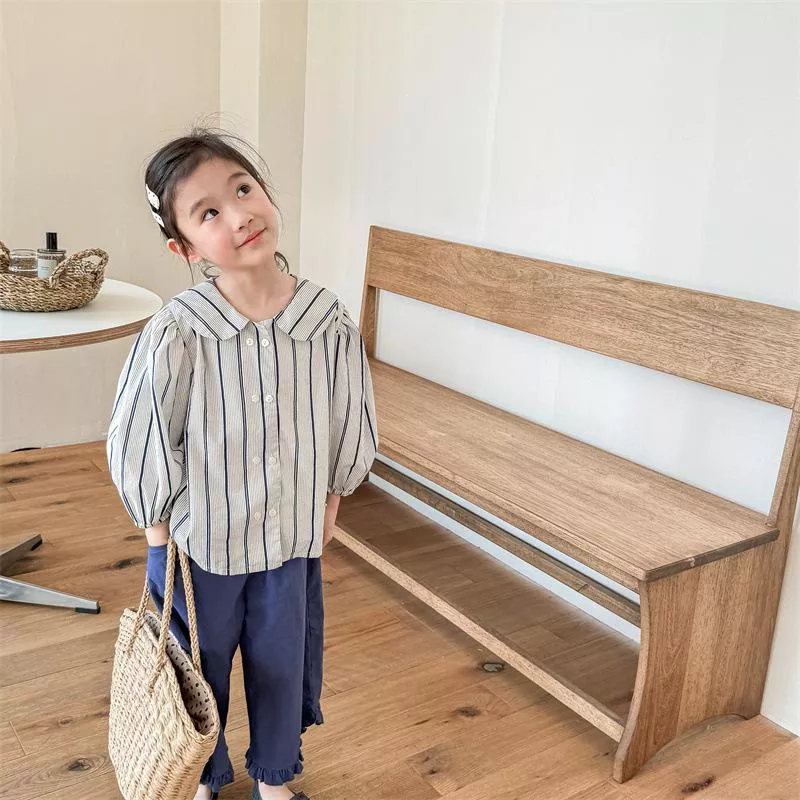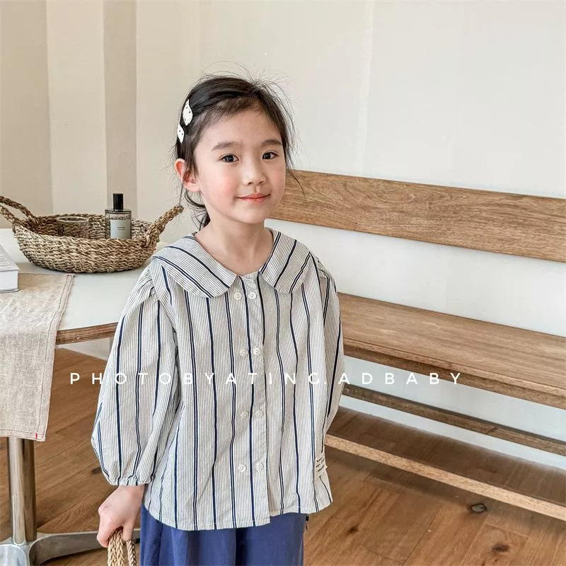 秋款韓版直條紋麻棉刺繡襯衫