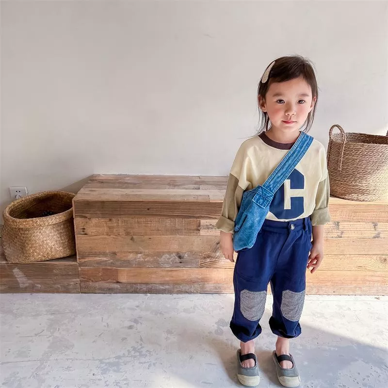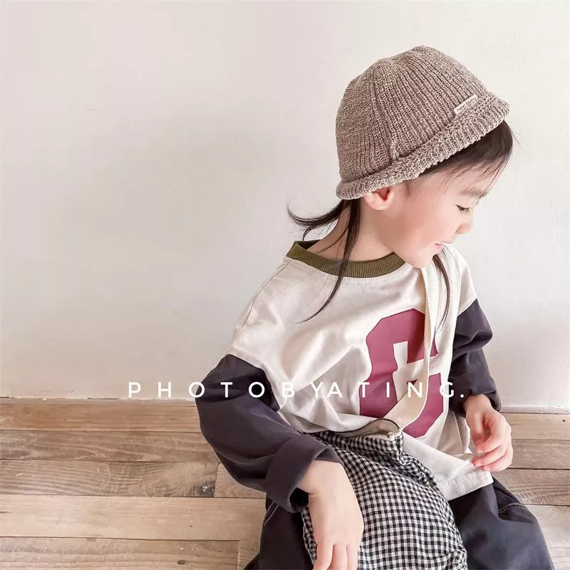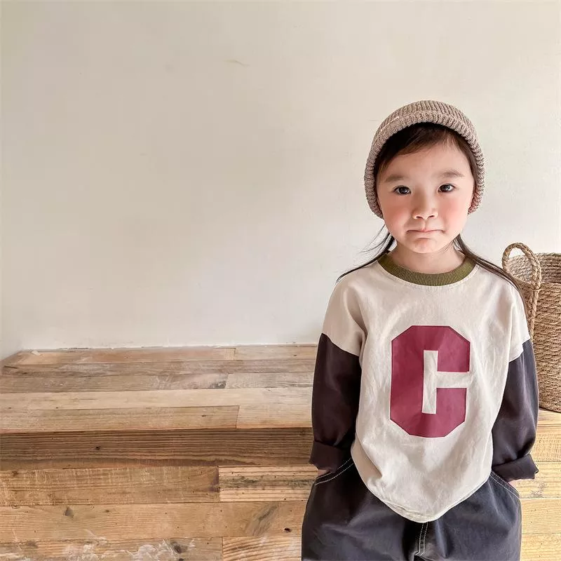 秋款韓版字母C拚色T-Shirt