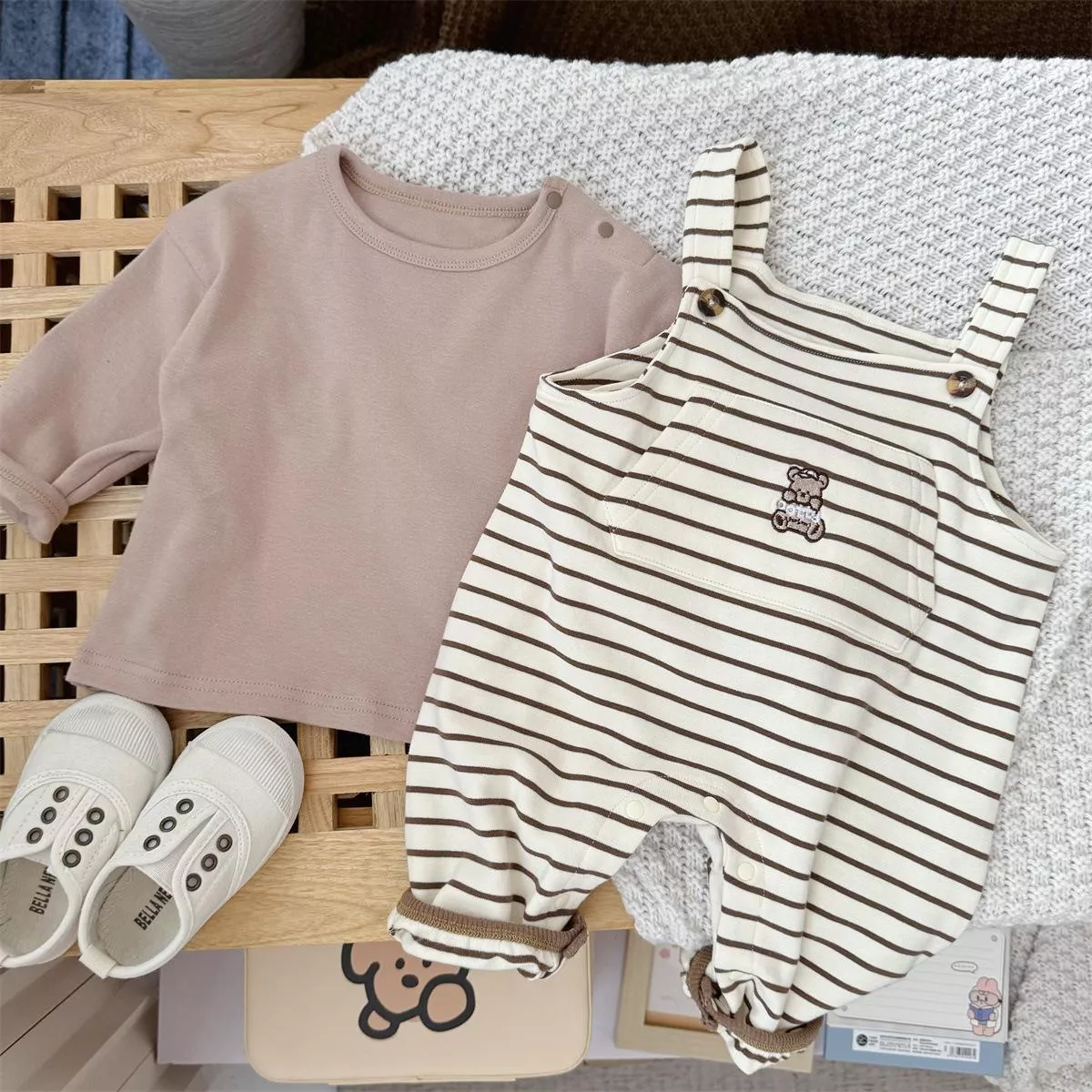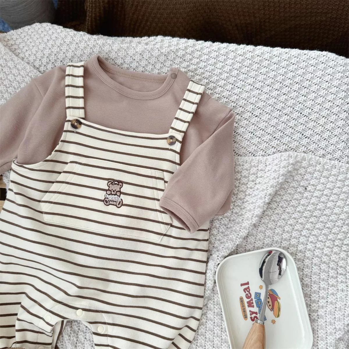 韓系條紋吊帶包屁